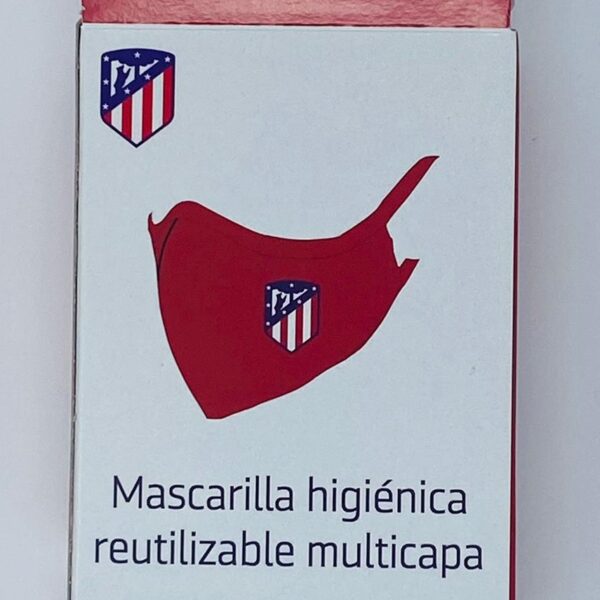 Mascarilla Atlético de Madrid, Producto Oficial, en color negro con escudo en rojo